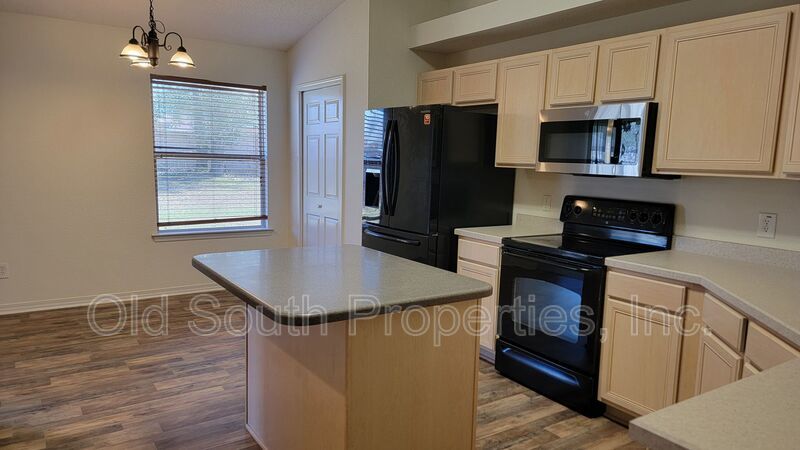 Open floor plan. Tile entry. Great room with cathedral ceiling. Formal dining room plus breakfast nook. Fully equipped kitchen with pantry & center island. Split master suite with double vanity, walk-in closet, whirlpool tub & separate shower. Inside laundry with washer & dryer which are "as is" - no warranty. Open patio. Privacy fenced backyard. Small dogs considered .